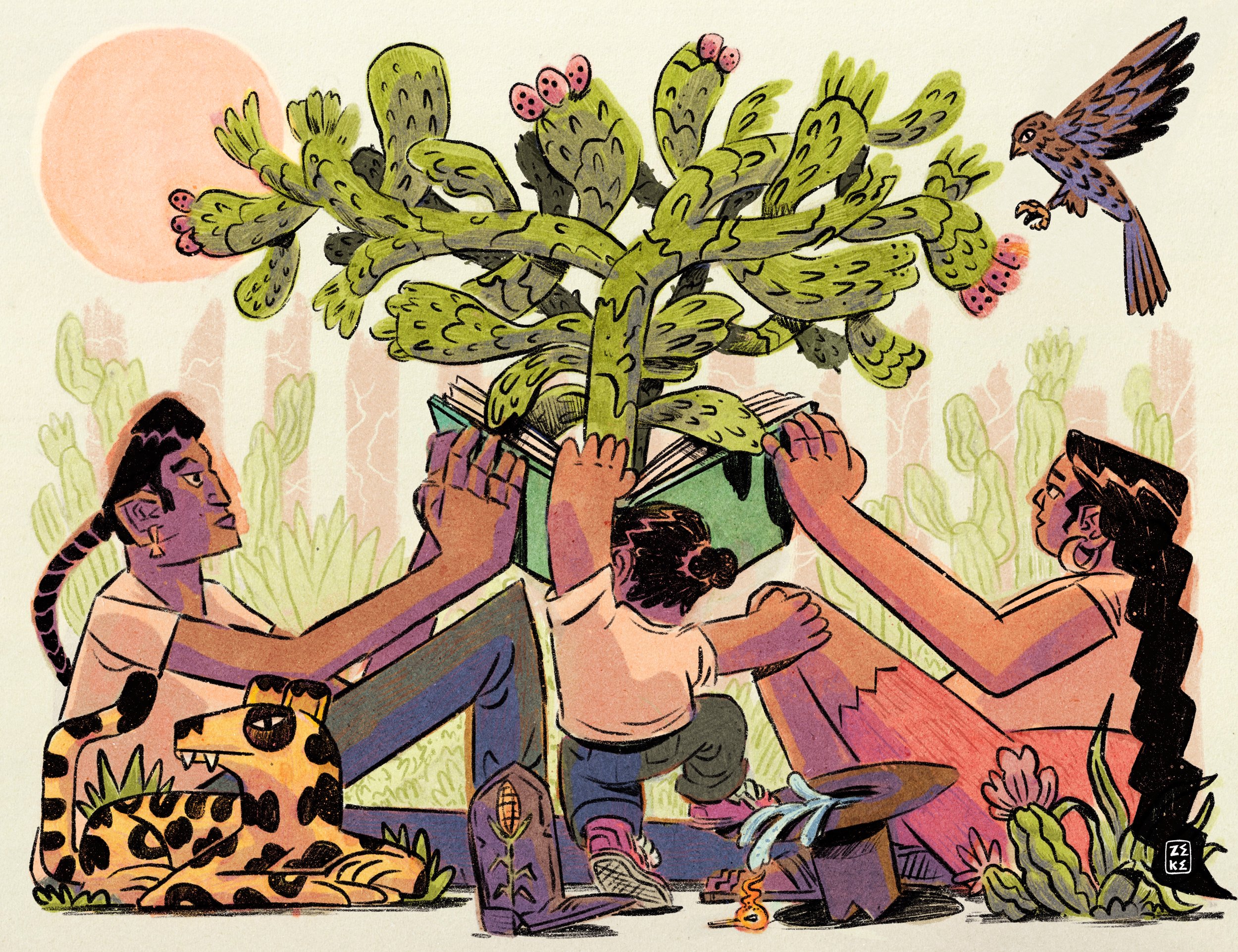 Zeke Peña is a Xicano storyteller and cartoonist from El Paso, TX. He makes comics and visual narratives that reclaim stories and remix history. His work is a mash-up of political cartoon, border rasquache and Hip Hop culture that addresses identity, politics, ecology and social justice. His book illustrations have received a Caldecott Honor Award, Boston Globe-Horn Book Award, Ezra Jack Keats Illustration Honor, Tomás Rivera Book Award, and the Pura Belpré Illustration Honor for his other work. He earned a degree in Art History from the University of Texas at Austin in 2005 and is self-taught in the studio. His work is in several collections of American and Latine art including the Smithsonian American Art Museum, National Museum of Mexican Art, Crystal Bridges Museum of American Art, and The Billy Ireland Cartoon Museum.